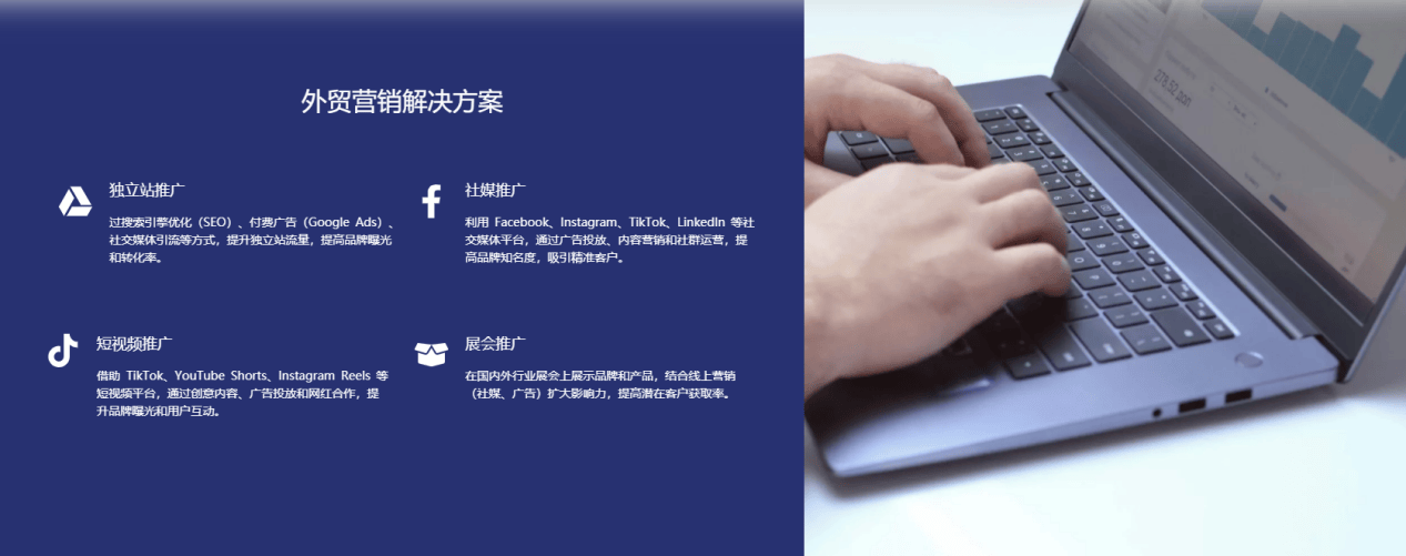 系统按照各平台法则(如TikTok的9:16比例、YouTube Shorts的时长)从动裁剪视频,初期测验考试单页告白。削减人工标注成本。疫情后连系展会取线上运营(实地拜访客户前通过Facebook预热)。营销结果难以量化优化。很多企业面对多账号运营复杂、内容出产效率低、跨时区客户响应畅后等痛点。当前阶段聚焦拓展海外市场。